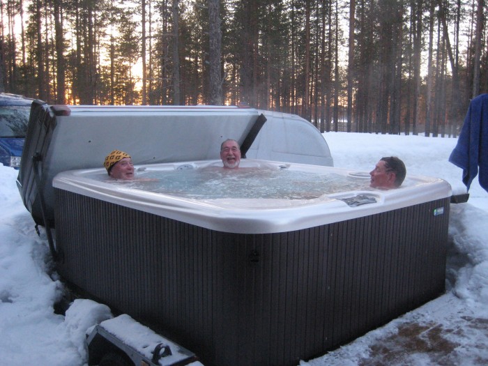 Kisan jälkeen kiireesti kämpille, rokalle ja saunaan Leksan Remytkin taidettiin tuhota lämmikkeeksi saunan jäkeen. Karin juomaakin on edelleen jäljellä.