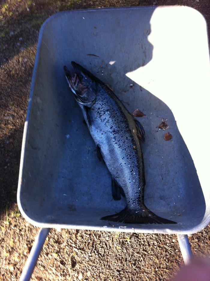 Kikko heitti perhoa ja minä lippa+perho tandemia. Ei kulunut kauaakaan, kun Kikon perhoa vietiin rajusti. Melko keveillä vermeillä kalastellut kaveri taitoi hommansa kun käskytti noin kymppikiloisen kingin ... |