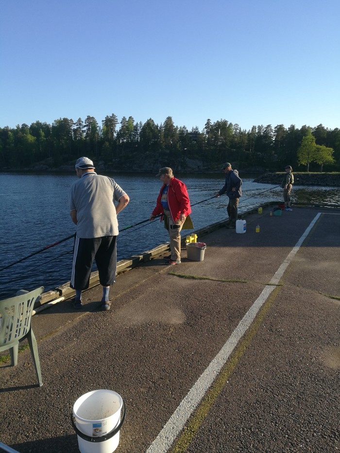 Iltapäivästä jatkettiin ja syönti alkoi uudelleen, kunnes tasan kello 15 lopetimme kalastuksen ja pakkasimme vermeet autoon. Paikalliset ja satamaravintolan asiakkaat ihmettilivät touhuamme ja kävivät yksi kerrallaan kyselemässä ja utelemassa saalistamme. Yksi muu onkija kävi paikalla keskilaiturilla, mutta ei nähdäksemme saanut saalista ja poistuikin parin tunnin istuskelun jälkeen paikalta.